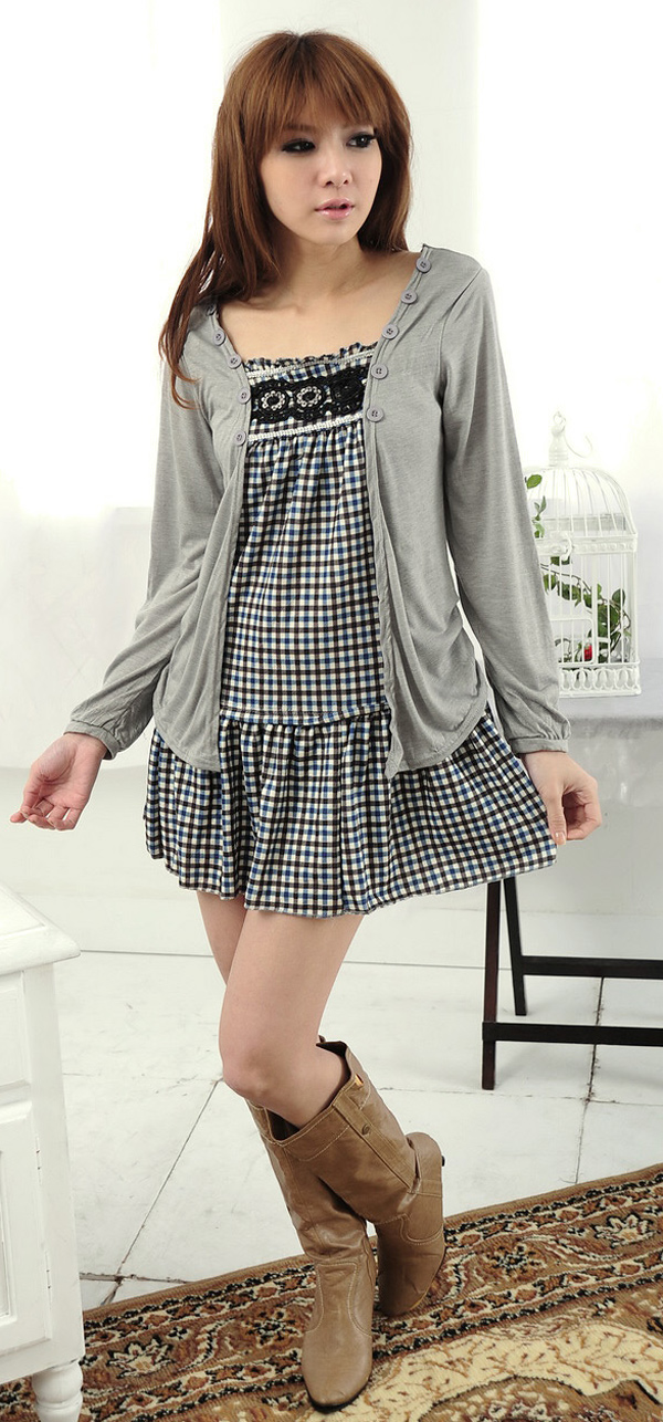 材质:针织棉 尺寸:胸围平铺82CM左右,裙长70CM左右,袖长55CM左右,肩35CM左右 其它:假两件,不可拆 模特实拍,质量保证,100%跟图片一样,请放心购买