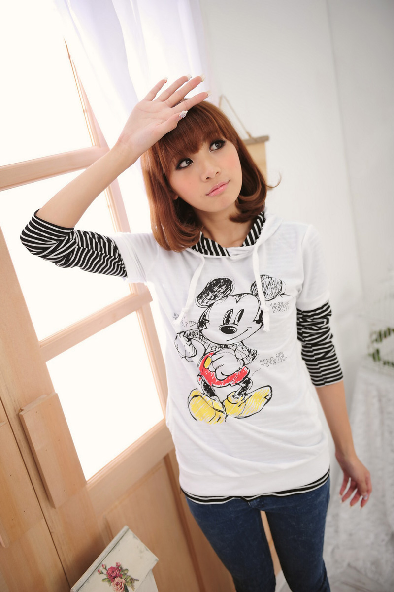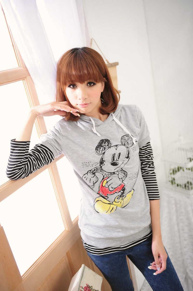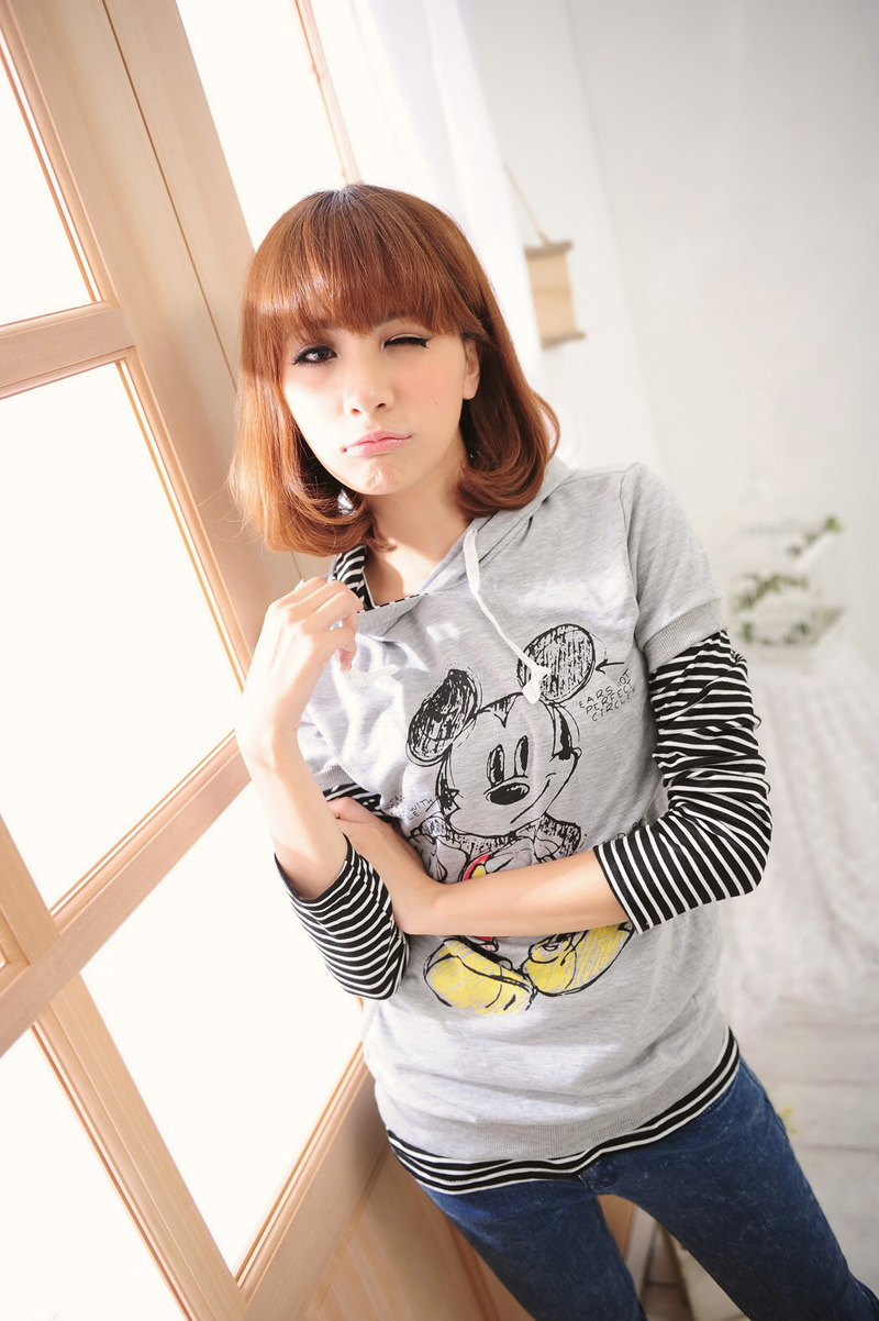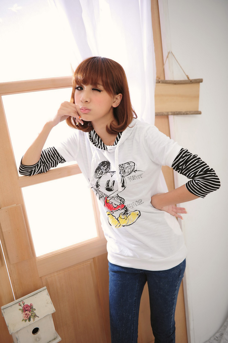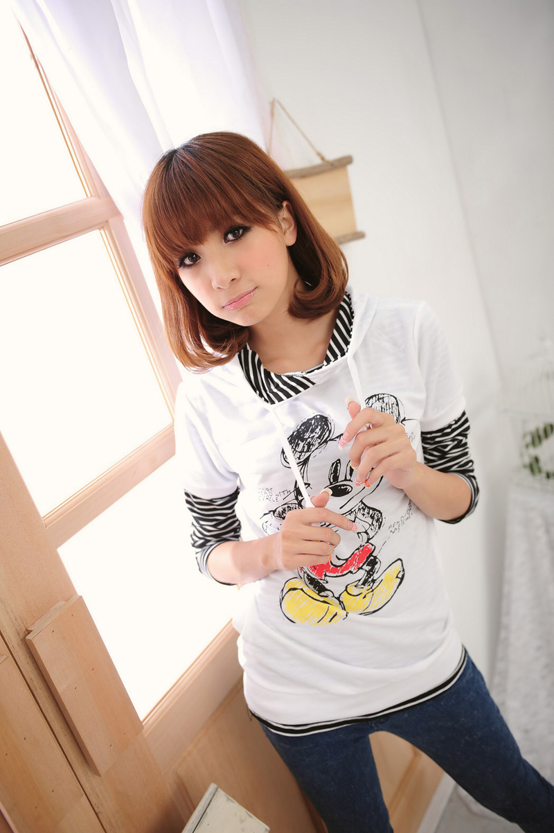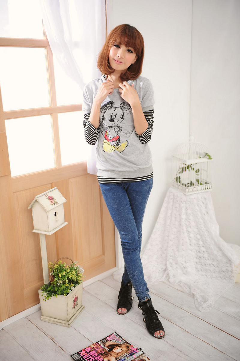 材质:卫衣棉(外套)+拉架棉(长袖条纹打底T恤)