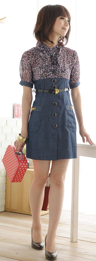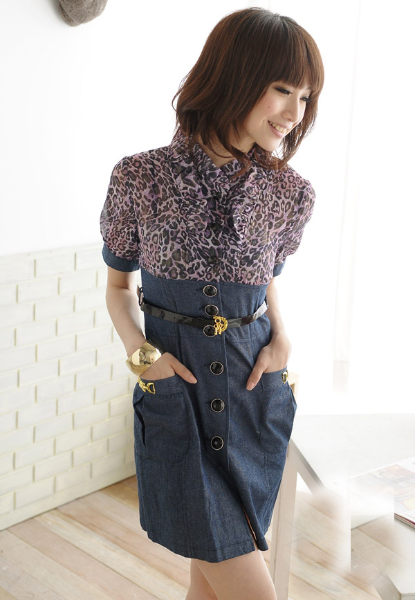 材质:牛仔+雪纺纱 配腰带